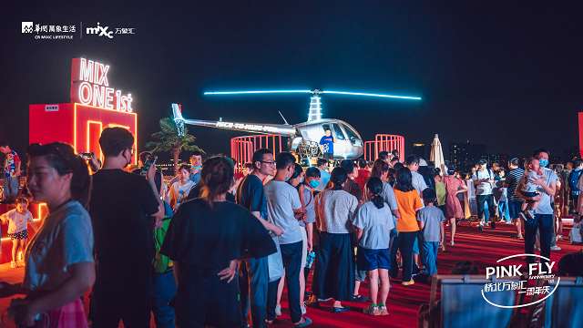這次1周年慶主題“PINK FLY”更是“玩上了天”,以沉浸式原創(chuàng)IP場(chǎng)景【就是要上天】全國(guó)首站,發(fā)動(dòng)商業(yè)客流引擎,超紅停機(jī)坪的場(chǎng)景中停靠這一架1:1定制直升機(jī),更是成為了網(wǎng)紅場(chǎng)景中爭(zhēng)相合影的話題內(nèi)容,在周年慶的屋頂場(chǎng)景正式對(duì)消費(fèi)者開放前,邀請(qǐng)了50位本地達(dá)人現(xiàn)場(chǎng)提前探秘體驗(yàn),通過各達(dá)人的體驗(yàn)感受通過媒體社交平臺(tái)進(jìn)行了第一輪傳播,并對(duì)消費(fèi)者開啟了素人視頻挑戰(zhàn)賽,通過各類有趣的激勵(lì)形式達(dá)到了全城創(chuàng)作視頻熱潮,引發(fā)消費(fèi)者獵奇打卡、拍攝傳播,也為橋北萬象匯1周年慶的相關(guān)信息進(jìn)行了有效推流,論證了“流量為王”的市場(chǎng)規(guī)律。