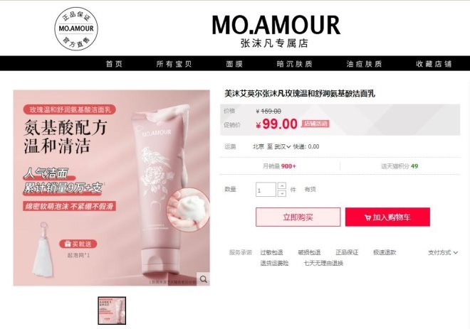 再有,雖然張沫凡現(xiàn)在作為KOL仍頗有名氣,但對(duì)自創(chuàng)品牌沒(méi)有起到太大效果。據(jù)悉,曾經(jīng)在2016年年銷(xiāo)售額突破億元的美沫艾莫爾,如今在淘寶平臺(tái)張沫凡專(zhuān)屬店里也僅剩下9款產(chǎn)品,其中,銷(xiāo)量最高的一款玫瑰溫和舒潤(rùn)氨基酸潔面乳,月銷(xiāo)量也只有900件。