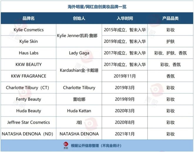 包括了英國(guó)著名彩妝師Charlotte Tilbury的同名美妝品牌Charlotte Tilbury(CT),美國(guó)流行天后蕾哈娜自創(chuàng)彩妝品牌Fenty Beauty,以及美國(guó)真人秀明星金·卡戴珊創(chuàng)立的香水品牌KKW FRAGRANCE等,都已進(jìn)入中國(guó)。