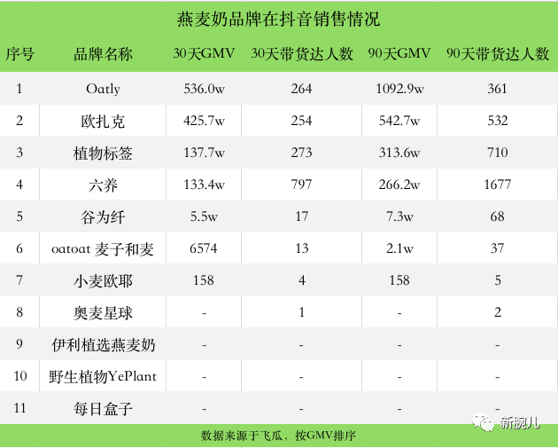 新腕整理了兩份燕麥奶品牌在淘寶和抖音銷售表,以Oatly線上業(yè)務情況作為參照,這些品牌經(jīng)營情況如何?