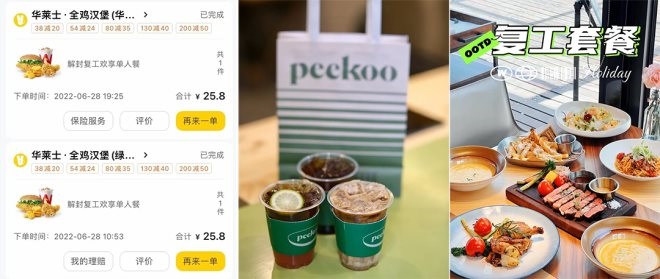 華萊士上新的“解封復(fù)工歡享單人餐”,漢堡+飲料+兩份小食,定價(jià)25元;上海Peekoo咖啡店推出的“三杯復(fù)工套餐”,美式+澳白+西柚,三杯組合定價(jià)32元;太倉西餐廳原定近600元的雙人餐,復(fù)工后調(diào)價(jià)65%。