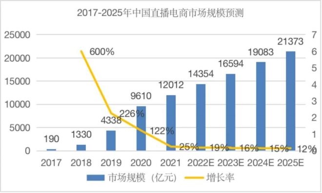 2017-2025年中國(guó)直播電商市場(chǎng)規(guī)模預(yù)測(cè)圖源由新眸繪制