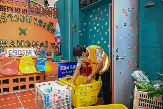 ▲圖為美團(tuán)快驢進(jìn)貨為迷你椰配送食材(圖片/順子)