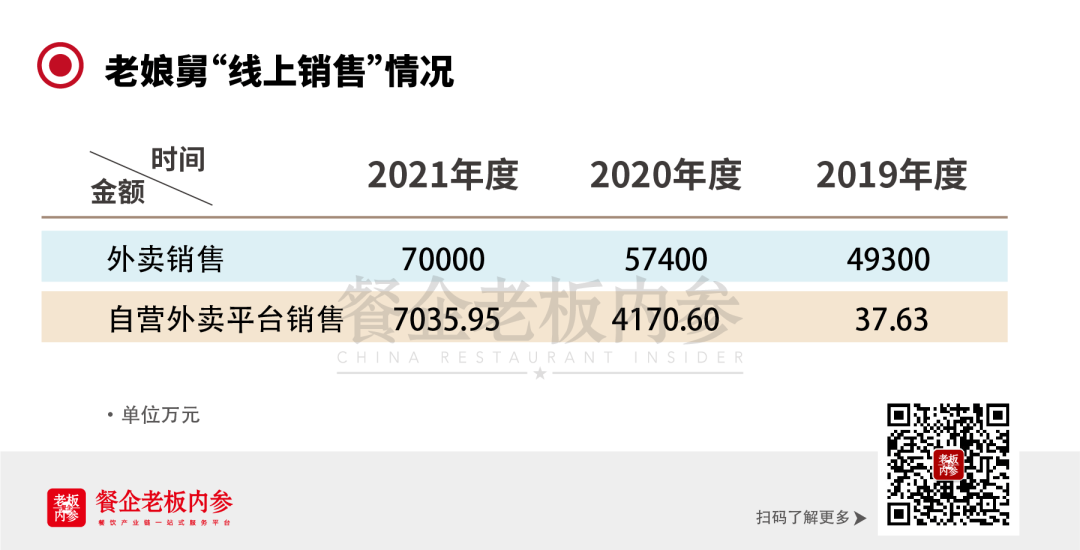 老娘舅餐飲門店在線下盈利模式外,近年來“線上銷售模式”上的數(shù)據(jù)也算是可圈可點。