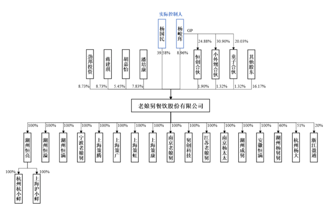 相比老鄉(xiāng)雞的“家族式”股權(quán)結(jié)構(gòu)(91.32%的股份為五名家族成員構(gòu)成)以及鄉(xiāng)村基的“家族信托”模式,老娘舅則更加“開放”。