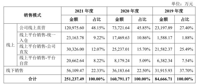 從近三年的銷售費用來看,認(rèn)養(yǎng)一頭牛花在營銷上的費用一直在大幅支出。從2019年的將近2億,到2020年的3億,再到2021年將近5億,主要投向線上渠道的營銷推廣。三年對應(yīng)的銷售費用率分別為18.82%、18.35%和22.46%,高于同行業(yè)平均水平。