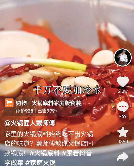 由于長(zhǎng)期受到口罩影響,4個(gè)月后,他們洞察到消費(fèi)者在家吃火鍋的需求,開(kāi)始嘗試賣(mài)火鍋底料,沒(méi)想到一條視頻直接帶來(lái)1000多單,不到10天賣(mài)了20多萬(wàn)。