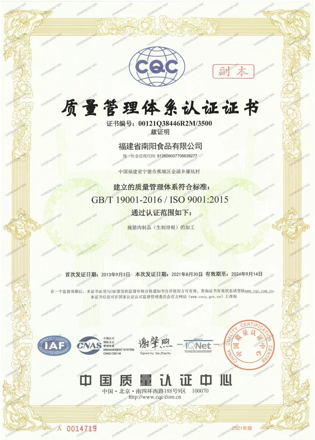福建省南陽食品有限公司位于福建省寧德市,是南陽實(shí)業(yè)集團(tuán)旗下11個(gè)實(shí)體成員企業(yè)之一,占地58畝,擁有員工600多人,高標(biāo)準(zhǔn)廠房4.3萬㎡,冷庫容量2萬噸,引進(jìn)德國、西班牙、臺(tái)灣等世界先進(jìn)的食品加工設(shè)備和生產(chǎn)工藝。公司一直堅(jiān)持豬肉產(chǎn)業(yè)鏈,健康好品質(zhì)經(jīng)營理念,年提供培根、火腿、丸類、腸類、扒類等產(chǎn)品。公司通過了ISO9001:2015國際質(zhì)量標(biāo)準(zhǔn)認(rèn)證、HACCP食品安全認(rèn)證和QS認(rèn)證。榮獲全國農(nóng)產(chǎn)品加工示范企業(yè)、全國農(nóng)產(chǎn)品主食加工企業(yè)、中國豬業(yè)全產(chǎn)業(yè)鏈?zhǔn)褬?biāo)桿企業(yè)、中國十佳冷鮮肉生產(chǎn)企業(yè)。