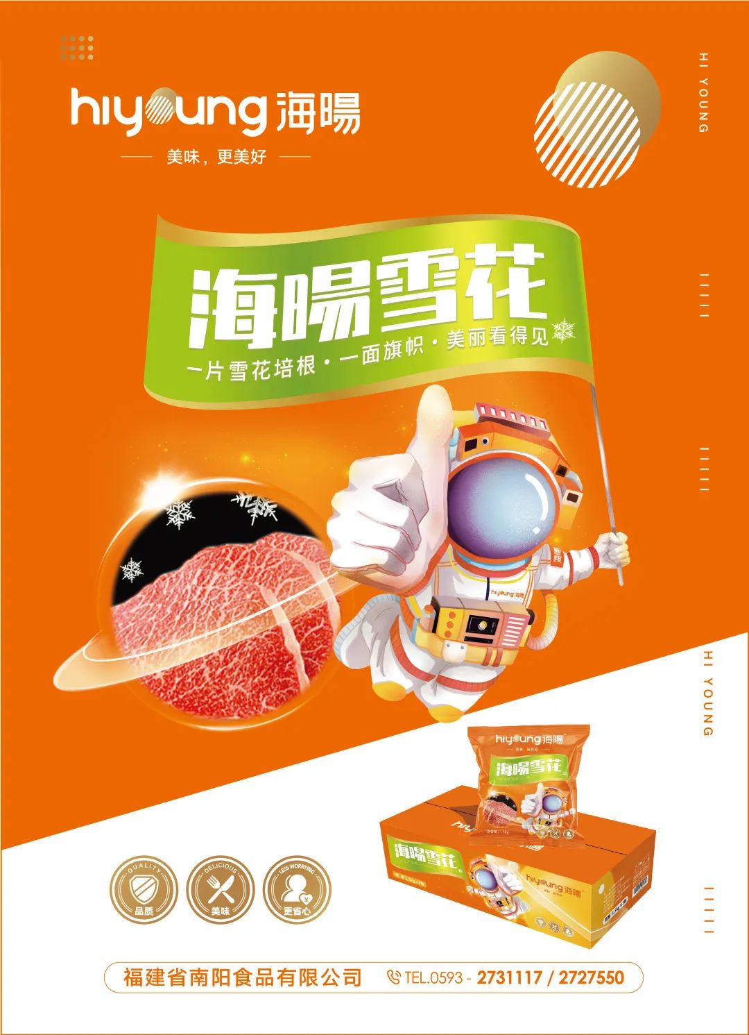 南陽食品不僅專注產(chǎn)品品質(zhì),也注重對(duì)外觀包裝的設(shè)計(jì),擁有一項(xiàng)外觀設(shè)計(jì)專利。2021年,企業(yè)以“美味,更美好”的品牌理念出發(fā),對(duì)“海暘雪花·培根”進(jìn)行煥新升級(jí),品牌從“海暘”更新至“Hiyoung海暘”。此次品牌logo的升級(jí)是企業(yè)26年的文化傳承與創(chuàng)新的結(jié)果,深刻賦予了南陽食品永遠(yuǎn)年輕、朝氣蓬勃的品牌特征,也是南陽食品新戰(zhàn)略的一個(gè)重要節(jié)點(diǎn)!癏iyoung海暘”品牌主張通過產(chǎn)品包裝,以直觀的方式向消費(fèi)者傳達(dá)核心認(rèn)同和精神價(jià)值。此次新升級(jí)包裝設(shè)計(jì)方案定位為:海暘雪花、一片培根、一面旗幟。設(shè)計(jì)方案延續(xù)了原有8年來的一片培根綠色飄帶的超級(jí)符號(hào)資產(chǎn),創(chuàng)新引用太空探索的公共品牌意識(shí)資產(chǎn),又融合了宇航員豎起大拇指對(duì)產(chǎn)品品質(zhì)美麗看得見確定性的生動(dòng)表達(dá)。這不僅體現(xiàn)了企業(yè)敢于創(chuàng)新的品牌意識(shí),也體現(xiàn)了企業(yè)堅(jiān)持對(duì)美食不斷探索的世界觀。
