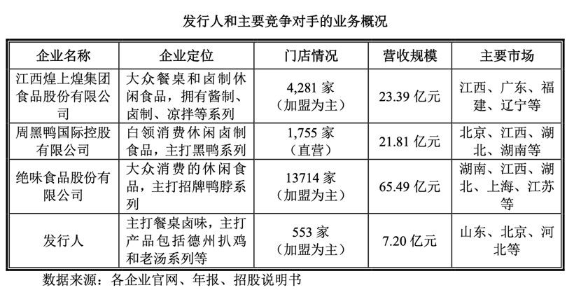 在招股書中,德州扒雞也將煌上煌、周黑鴨和絕味食品列為主要競(jìng)爭(zhēng)對(duì)手。