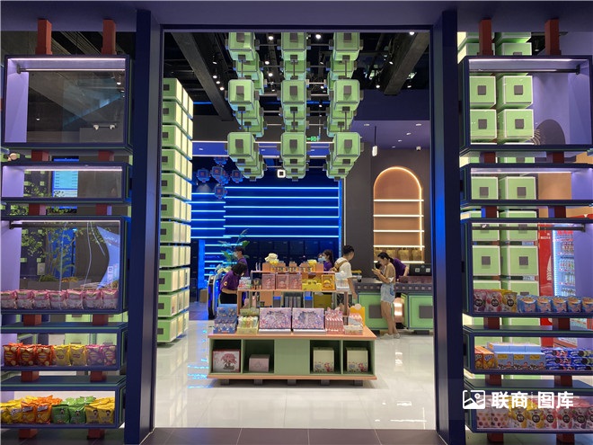 據(jù)了解,門店位于杭州大悅城商場8樓,面積高達(dá)2500㎡,主要以零售區(qū)和運動游樂區(qū)為主。零售區(qū)域位于門店服務(wù)臺旁邊,主要是售賣飲料、小食以及文創(chuàng)產(chǎn)品、T恤等,滿足客戶的實用需求。