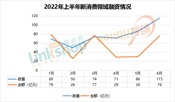 從上半年看,6月份融資數(shù)和金額整體上處于上升態(tài)勢(shì),消費(fèi)市場(chǎng)回暖明顯。