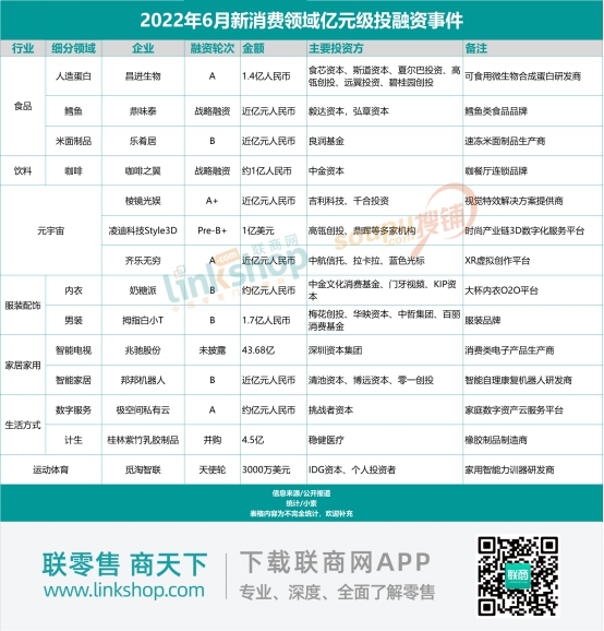 本月億元級(jí)融資共14起,數(shù)量和規(guī)模較上月有明顯提升,主要分布在食品飲料、元宇宙、家居家用以及服裝配飾等多個(gè)領(lǐng)域。
