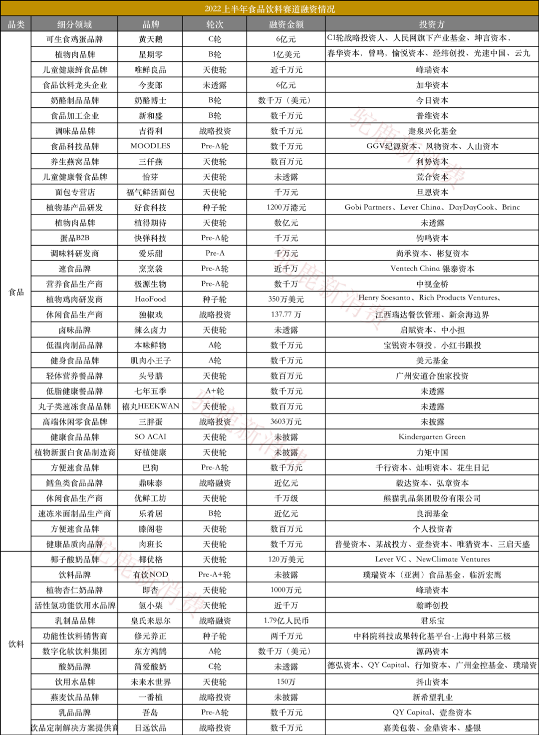 上半年食品飲料賽道投融資盤點:46個品牌獲資本加持