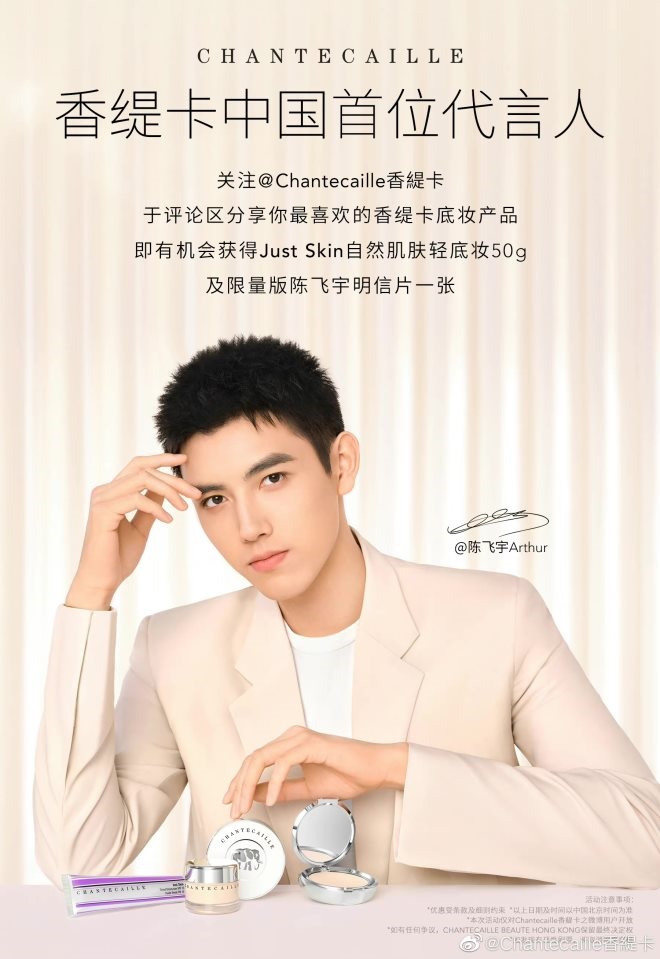 7月5日,彩妝品牌香緹卡官宣中國首位代言人為陳飛宇,并且同步推出陳飛宇《真實三部曲》品牌 TVC ,重點推廣品牌隔離套裝。