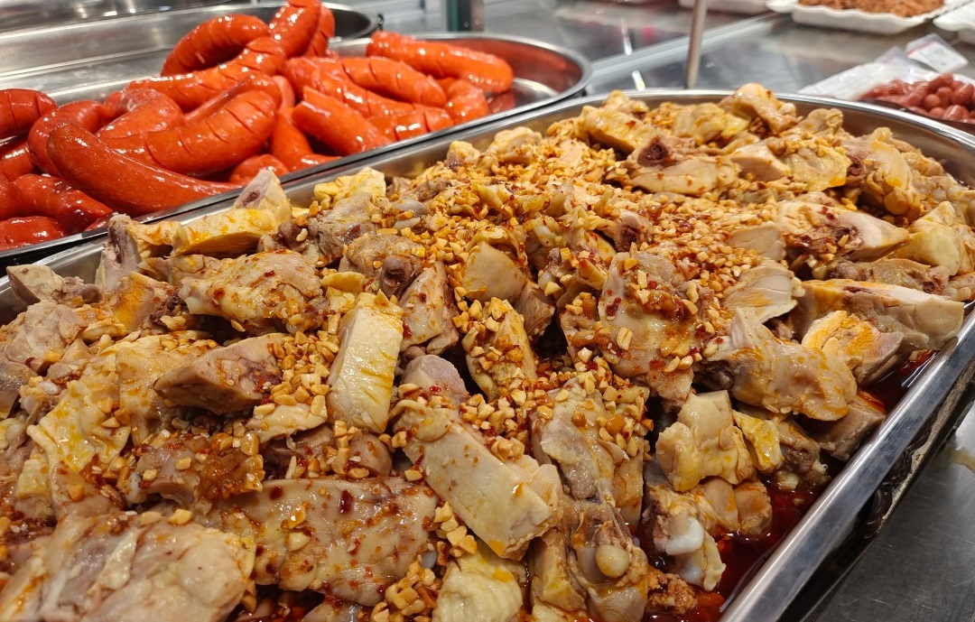 除了各種品牌好物,店內(nèi)還有不少家家悅自有品牌商品。同時,門店還推出了品種豐富的“快手菜”,以及各式熟食、面點,不滿足消費者一日三餐所需。凈菜產(chǎn)品則給年輕人提供了方便,加上料包,微波爐加熱,即可享受美味。