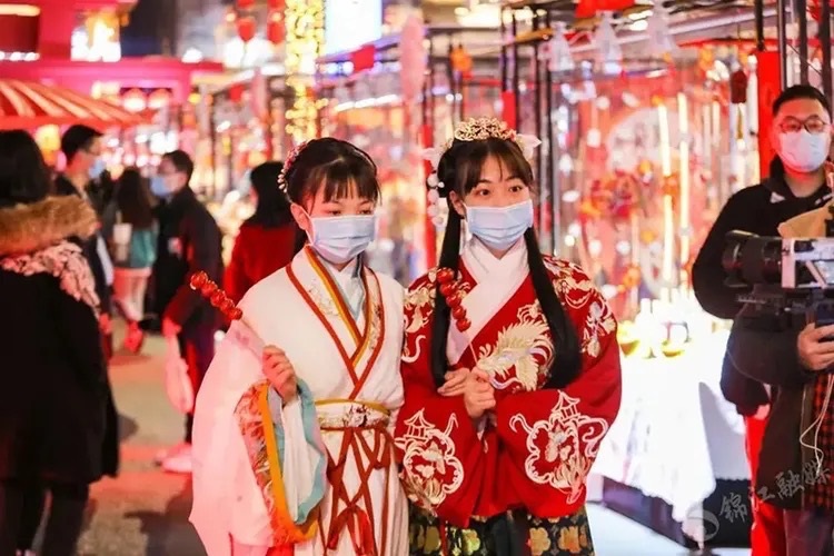 此外,不少景區(qū)、古城都推出了“穿越”夜市,小哥哥、小姐姐穿上漢服,在古色古香的建筑中逛夜市、拍美照。