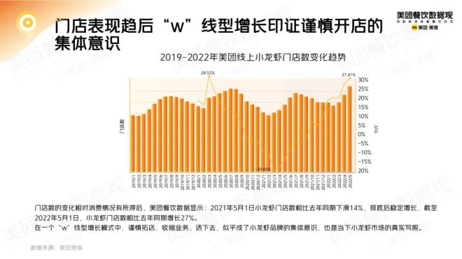 然而,基本面沒有那么樂觀,頭部品牌收縮嚴重,整個小龍蝦行業(yè)陷入“w”線型增長模式中,謹慎拓店、收縮業(yè)務、活下去,似乎成了小龍蝦品牌的集體意識,也是當下小龍蝦市場的真實寫照。