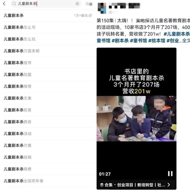 圖/小紅書(shū)平臺(tái)兒童劇本殺相關(guān)貼子(左)