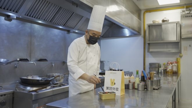 ▲外賣騎手到雪糕批發(fā)店按單取貨 攝影:王恭