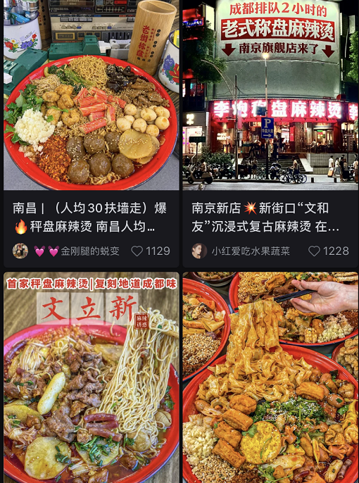此外,以往麻辣燙都屬于一人食用餐場景,無法進(jìn)行分享。稱盤麻辣燙本身就是一個(gè)大盤子,既適合一人食,也可以作為分享套餐出現(xiàn),社交屬性強(qiáng),無形當(dāng)中切中了聚餐消費(fèi)場景。