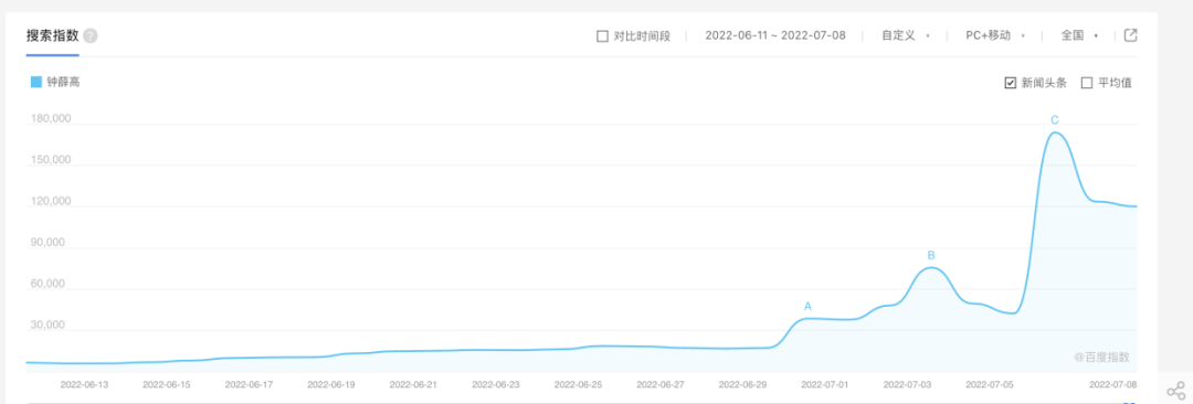 結(jié)合百度搜索大數(shù)據(jù)來看,網(wǎng)絡(luò)上對鐘薛高討論熱度的高點主要集中在7月1日至7月7日期間。
