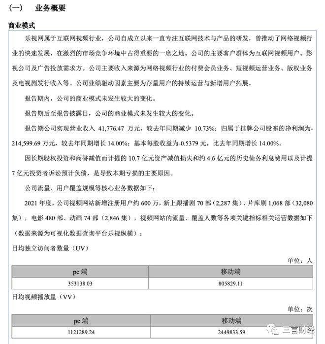樂(lè)視網(wǎng)稱,因長(zhǎng)期股權(quán)投資和商譽(yù)減值而計(jì)提的10.7億元資產(chǎn)減值損失和約 4.6億元的歷史債務(wù)利息費(fèi)用以及計(jì)提7億元投資者訴訟預(yù)計(jì)負(fù)債,是導(dǎo)致2021年虧損的主要原因。