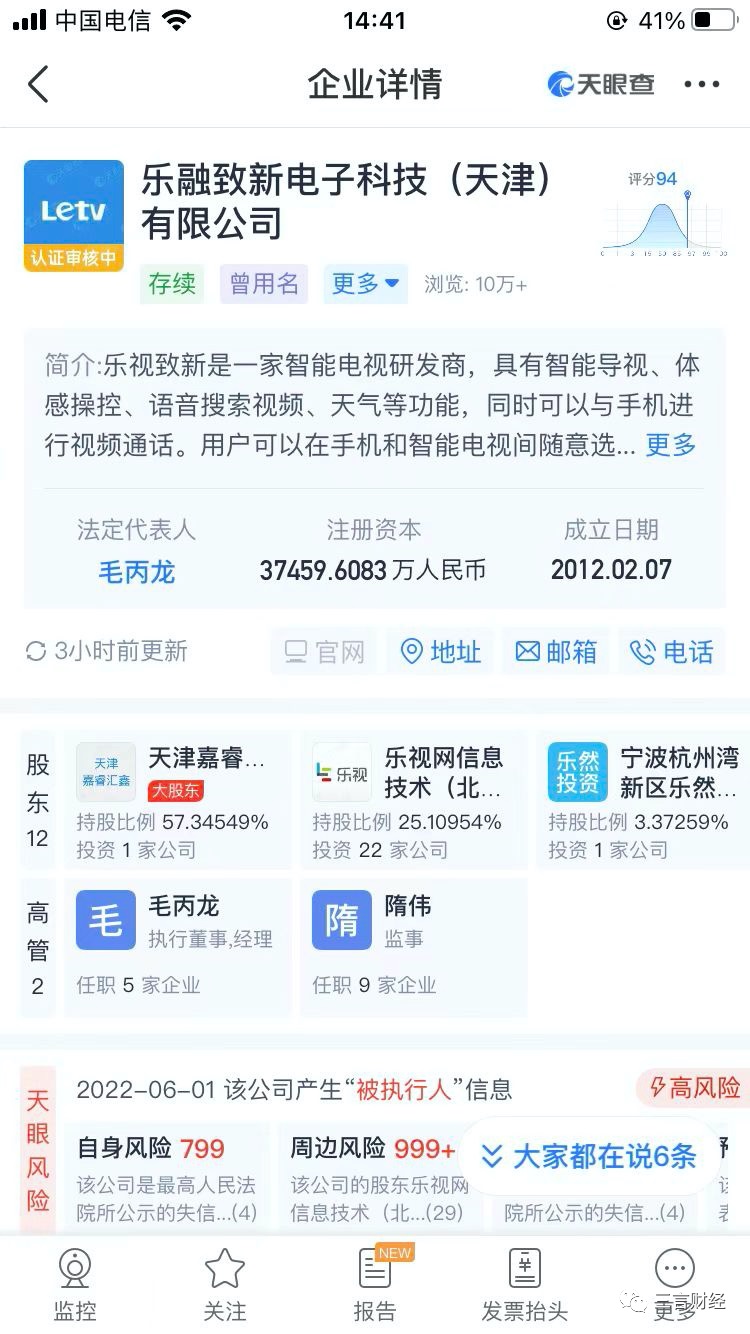 而 @Letv 微博賬號(hào)認(rèn)證的主體公司是樂(lè)融致新電子科技(天津)有限公司。