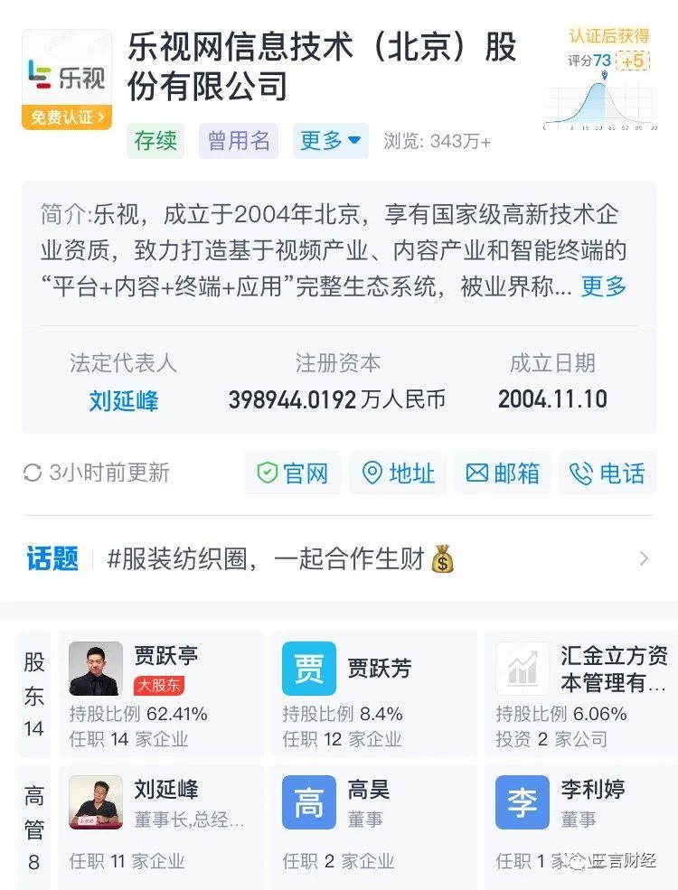 有網(wǎng)友稱,印象中樂(lè)視網(wǎng)早就被融創(chuàng)收了,但查了一下發(fā)現(xiàn),最大股東還是賈躍亭。