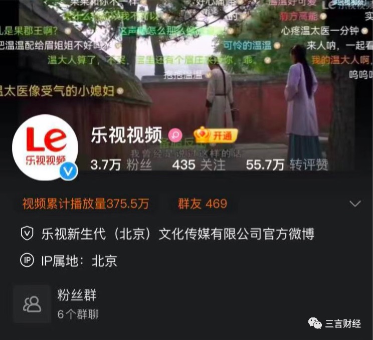 三言財(cái)經(jīng)發(fā)現(xiàn),樂(lè)視視頻的抖音賬號(hào)和微博賬號(hào)認(rèn)證的主體公司均為樂(lè)視新生代(北京)文化傳媒有限公司。