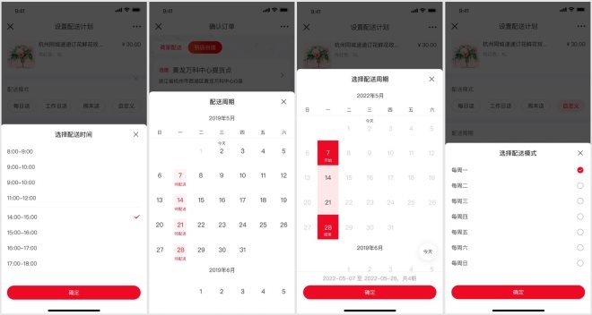 首先是大幅提升用戶的消費(fèi)體驗(yàn)。隨心訂提供日歷式的下單模式,可以滿足客戶更個(gè)性化的下單需求:客戶在下單時(shí)可以自定義配送的周期和時(shí)段,生成專屬的配送計(jì)劃,并支持修改配送計(jì)劃,實(shí)時(shí)查看配送進(jìn)度,在提升客戶使用體驗(yàn)和粘性的同時(shí),也減少了商家的售后咨詢量。