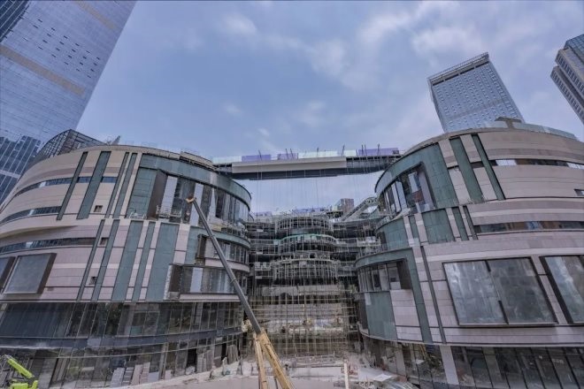 另外,根據(jù)現(xiàn)場(chǎng)施工情況來(lái)看,室外整體外立面基本已經(jīng)完工,只剩下一些收尾工作,室內(nèi)燈光、扶梯安裝等工作也已完成。
