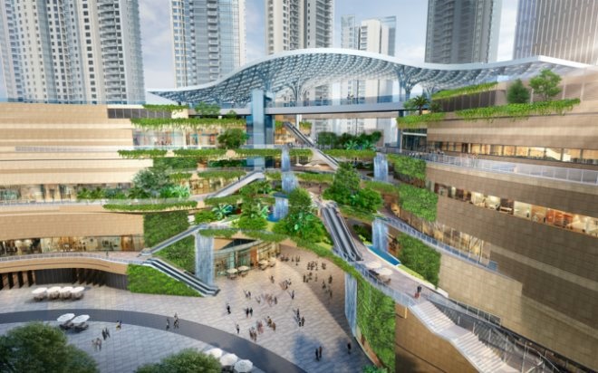 亞馬遜森林瀑布:擁有傲視亞洲的魔幻場(chǎng)景空間,將建筑與綠意相結(jié)合,打造都市中的一片綠林。