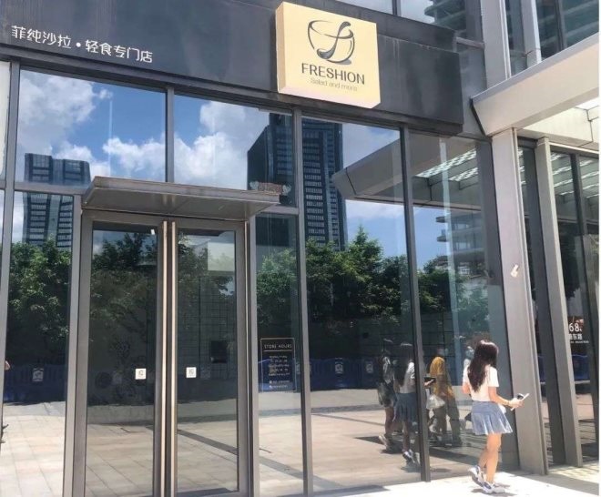 走進(jìn)細(xì)看,原來是一家輕食店。曾幾何時(shí),該店里還人滿為患。而如今,赫然醒目的沙拉輕食套餐菜單展架已悄然不見,店門頭的招牌還在,但整個(gè)店內(nèi)已空空如也,臺(tái)面上也早沒了那些擺盤精致的輕食。