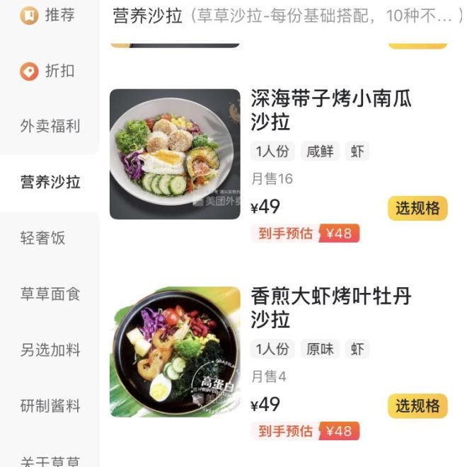△廣州某輕食店的沙拉價(jià)格已接近50元