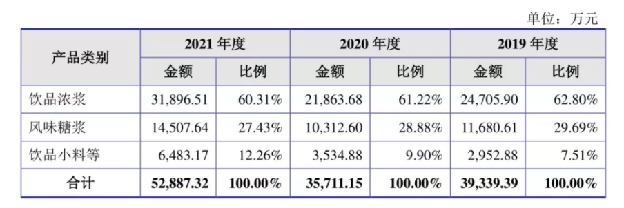 產(chǎn)品結(jié)構(gòu)上,德馨食品的主營業(yè)務(wù)就是濃漿、糖漿、小料。