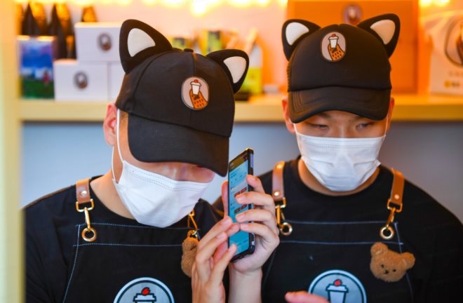 ▲盲人咖啡師天保、天佑可以通過美團語音識別技術核銷線上訂單(李亞 攝)