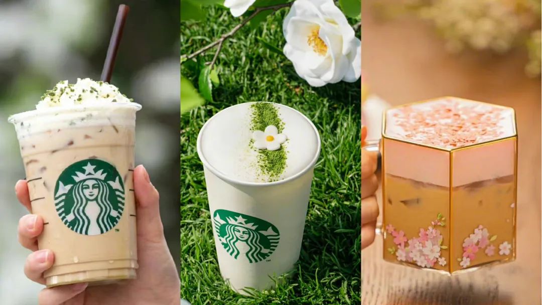 龍井茶酥漾拿鐵(左);山茶花漾拿鐵(中);櫻花初綻拿鐵(右)
