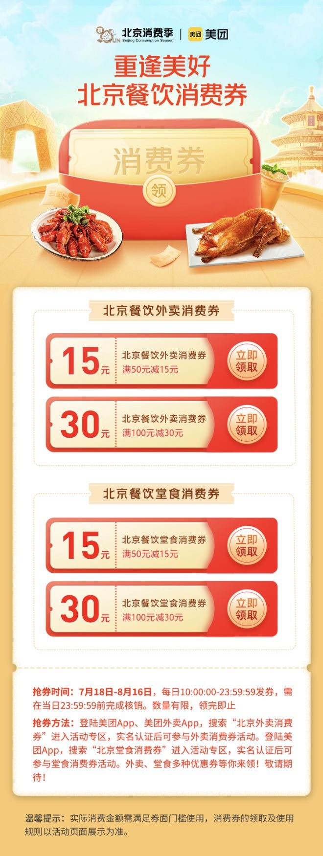2022北京餐飲消費(fèi)券來(lái)了!7月18日美團(tuán)開(kāi)搶