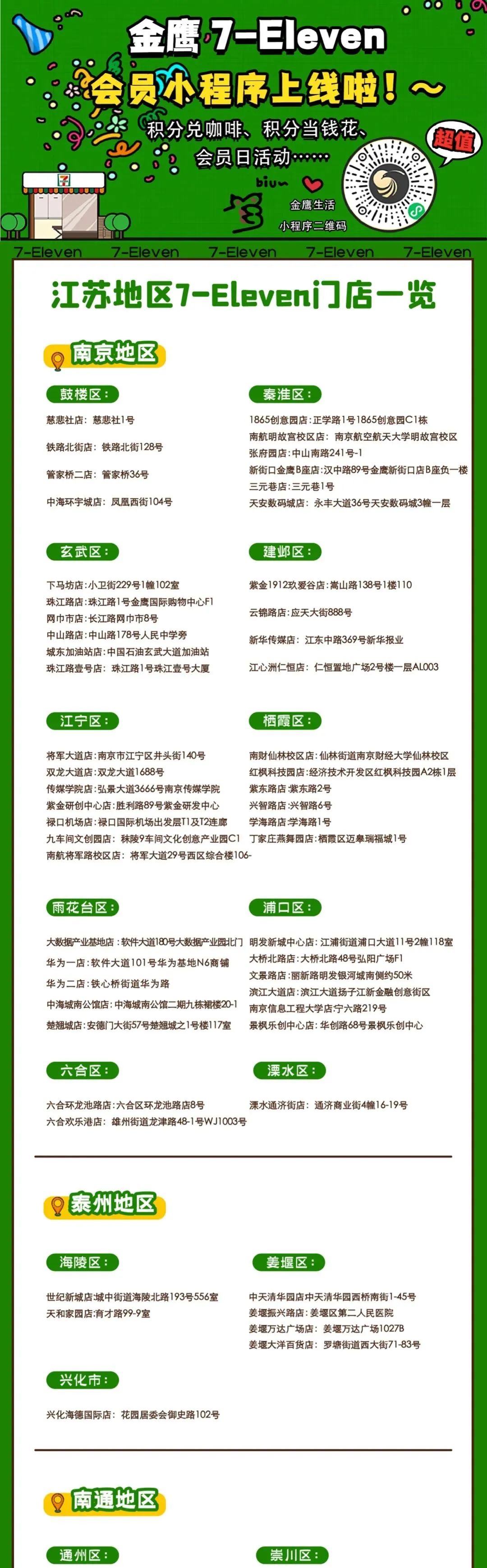 隨著江蘇市場(chǎng)的不斷高速布局,預(yù)計(jì)在2022年第三季度,金鷹7-Eleven便利店即將達(dá)成100店目標(biāo),遍布江蘇省八市。未來,金鷹7-Eleven仍將進(jìn)一步加速拓展,積極響應(yīng)國(guó)家號(hào)召,大力發(fā)展“便利經(jīng)濟(jì)”,通過多元化的商品,強(qiáng)有力的供應(yīng)鏈、貼心便利的服務(wù),為鹽城市民打造“近且便利”的美好城市生活。