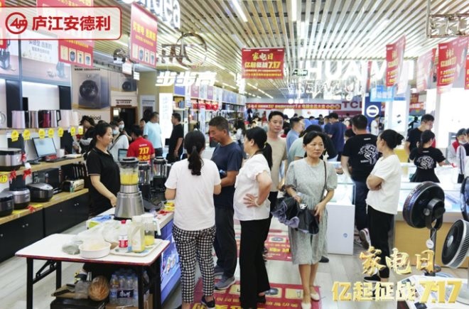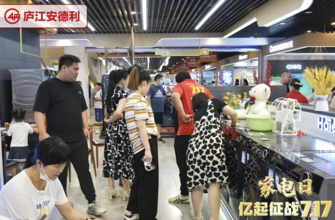 政府政策一實施,市場活力被激發(fā),消費潛力被釋放,有效促進(jìn)了消費回補。安德利一年一度家電日正趕上這波紅利,全員營銷、全員宣傳,充分發(fā)揮政府消費券的拉動作用,極大地提升了今年家電日預(yù)售效果,貨源儲備額達(dá)1.45億元!巴蠲老M·廬江GO”消費補貼是消費者付款直減,感受直接,讓利實在,政府消費券疊加家電日讓利,乘數(shù)效應(yīng)顯現(xiàn),刺激了消費者的購買欲,助燃了家電終端零售市場。