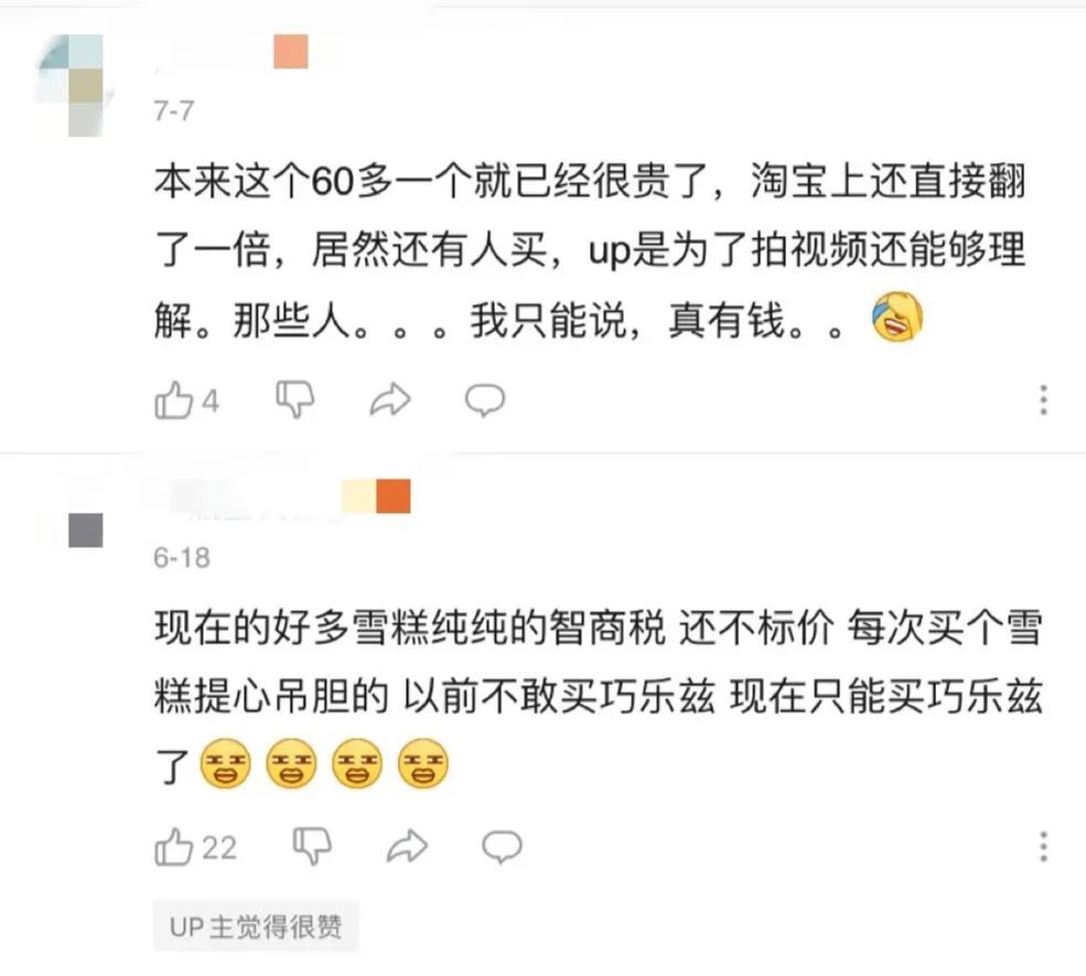 在社交媒體的各色茅臺(tái)冰淇淋測(cè)評(píng)下,評(píng)論區(qū)網(wǎng)友們紛紛把茅臺(tái)冰淇淋稱為“純純智商稅產(chǎn)品”,并調(diào)侃“名字60塊,冰淇淋6塊”。