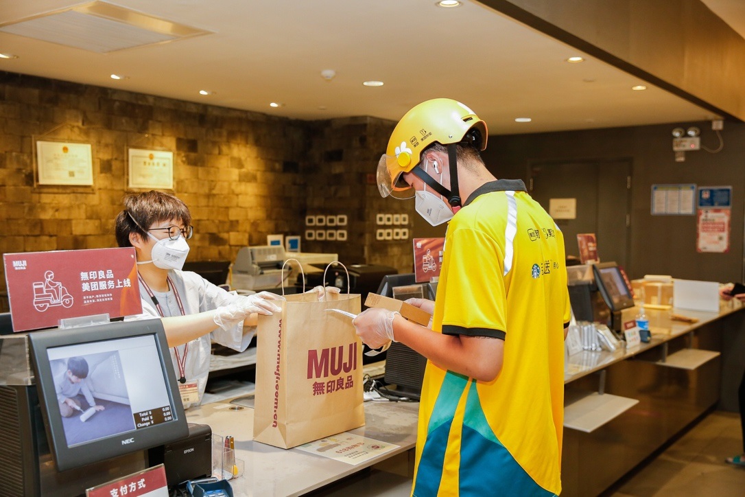 ▲ 美團騎手在無印良品取貨 (趙文 攝)