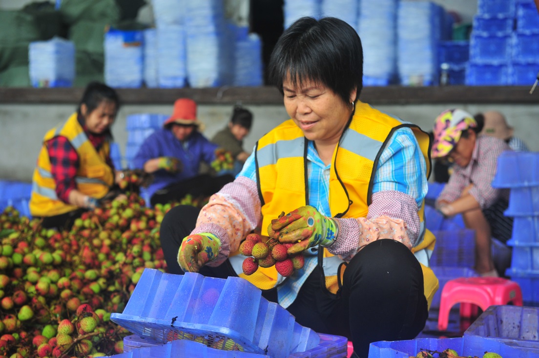 ▲本地村民正在分揀供應(yīng)美團優(yōu)選的荔枝 (王艷 攝)