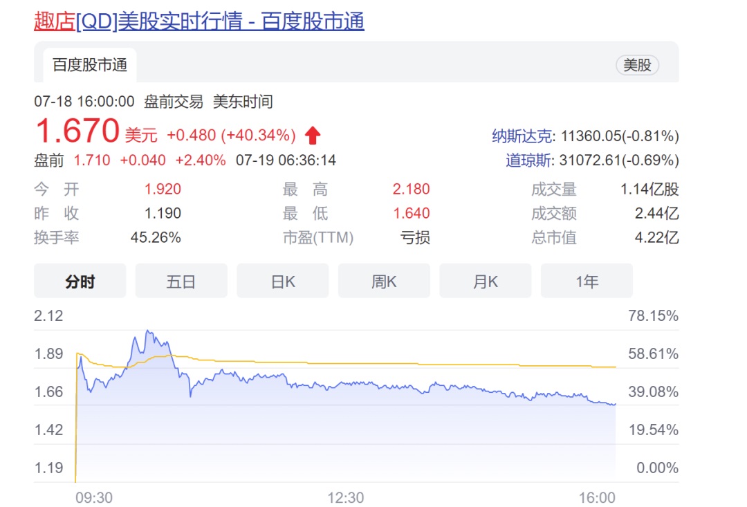 直播行業(yè)分析人士粗略計(jì)算,7月17日趣店羅敏的直播活動,花費(fèi)過億,生生砸出好幾個(gè)熱搜。隨后一天,趣店股價(jià)暴漲40.3%,截至7月19日交易日前,趣店總市值從3億美元上升到4.22億美元,折合近10億人民幣。