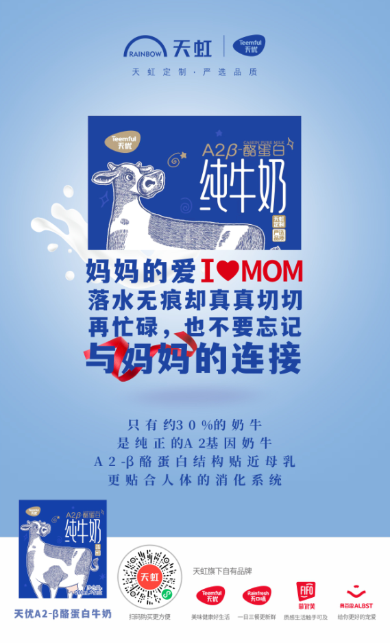 全球擁有A2基因的奶牛非常稀缺,能解決乳糖不耐受人群的喝奶問題,但僅少量能進入液態(tài)奶消費市場。天虹推出的天優(yōu)A2β酪蛋白純牛奶,更利于人體吸收,是“乳糖不耐受”人群的福音。