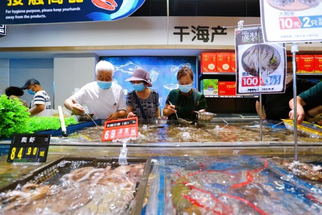 來自中國海鮮之都威海的各種海產(chǎn)品,以及帝王蟹、珍寶蟹、波士頓龍蝦等世界各地海產(chǎn),通過全程冷鏈系統(tǒng)直達(dá)門店。