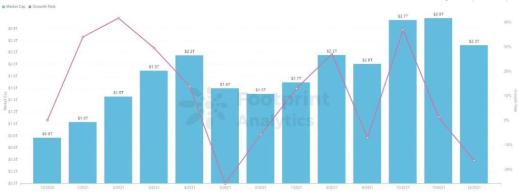 Footprint Analytics數(shù)據(jù)顯示,越來越多的資金正在流入Web3領(lǐng)域,全球加密市場總市值在過去一年翻倍增長,目前已超2萬億美元。
