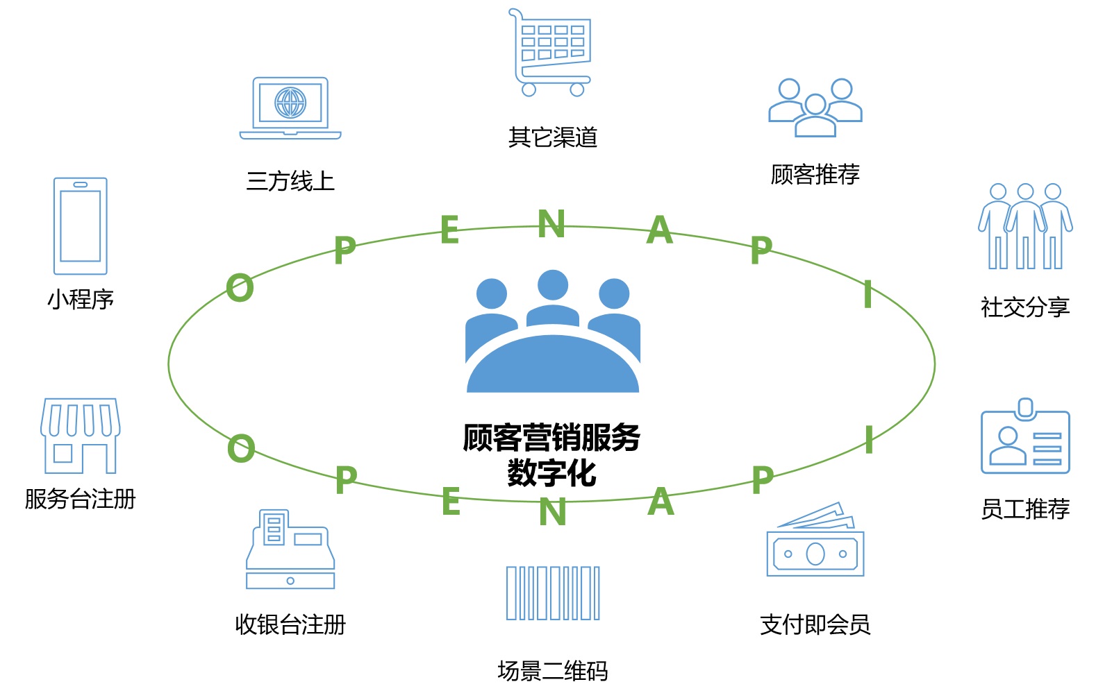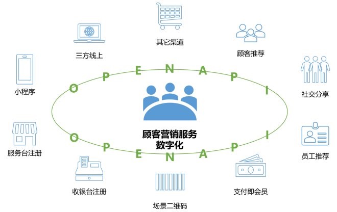打造起更為多渠道、多手段、流暢便捷的全觸點(diǎn)會員拉新模式,充分利用現(xiàn)有場景、創(chuàng)造創(chuàng)新場景,實(shí)現(xiàn)公域引流與私域轉(zhuǎn)化,完成顧客向會員的沉淀。除傳統(tǒng)方式外,支持支付即會員、社交拉新、場景二維碼拉新等多種形式。