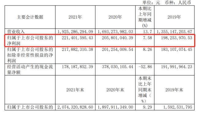 2021年天味的凈利潤為18459萬,相較于2020年36427萬,下降了49.32%,也正是因為2021年過低的基數(shù),使得天味在半年報中,有了119.63%的巨額增幅。
